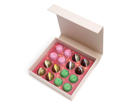 Корпус из нежного шоколада скрывает оригинальную начинку: жгучие нотки алкоголя, воздушный маршмеллоу, соленую карамель, нежное пралине и это далеко не все вкусы. Выбирайте, какой десерт порадует вас и ваших близких.