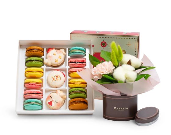 Вкусные сочетания, воплощенные в цветочных образах подарков на любой случай. Композиции из живых растений с аппетитными напитками и десертами.
