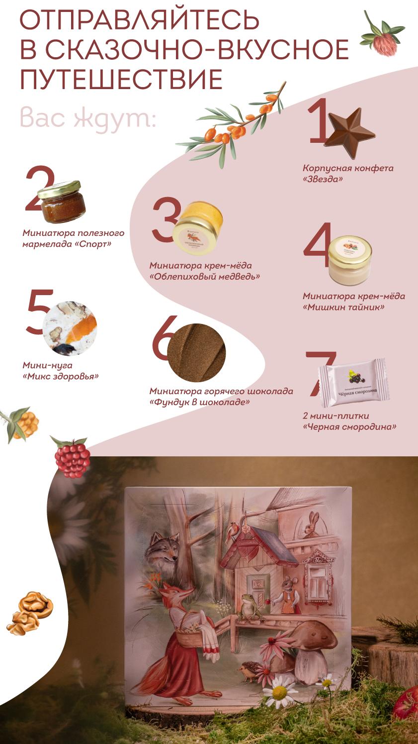 «Теремок» — прекрасный подарок как и взрослым, так и детям! За пестрой упаковкой, которая навеет воспоминания о любимых сказках, скрываются аппетитные сладости.