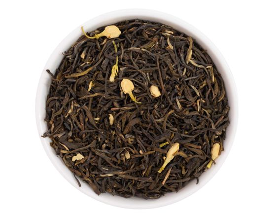 Ароматный зеленый чай, щедро украшенный лепестками жасмина. Наслаждайтесь утонченно-сладким вкусом с нотами благоухающих бутонов.
