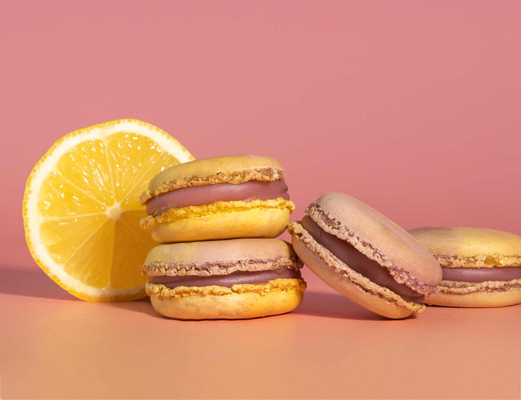 Состав: сахар, миндальная мука, белок яичный, молоко, 3,5%, сливки, 35% (нормализованные сливки, стабилизатор каррагинан), пюре лимон, вода, масло сливочное, 82,5%, мука пшеничная, краситель пищевой (e110, e122, e132), пектин, экстракт лаванды, каррагинан, цитрат натрия, камедь ксантановая, камедь рожкового дерева.