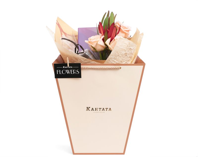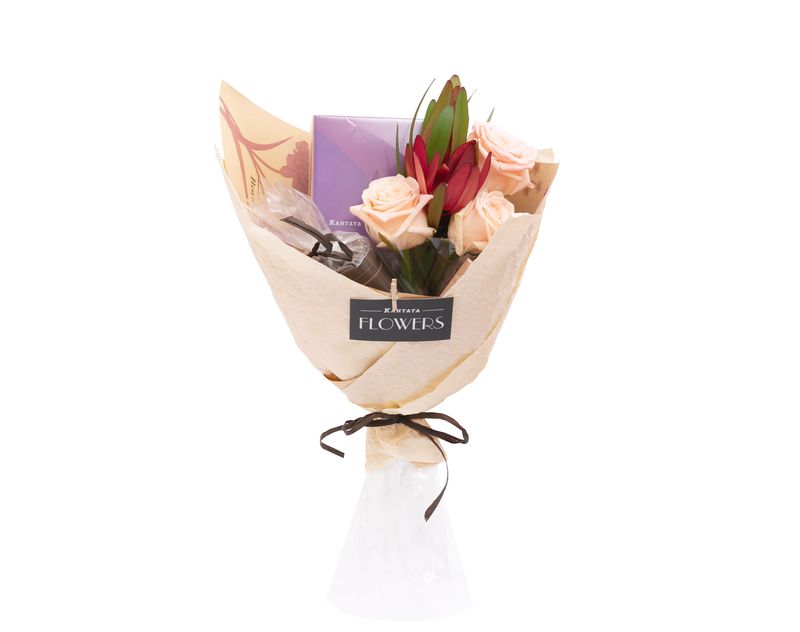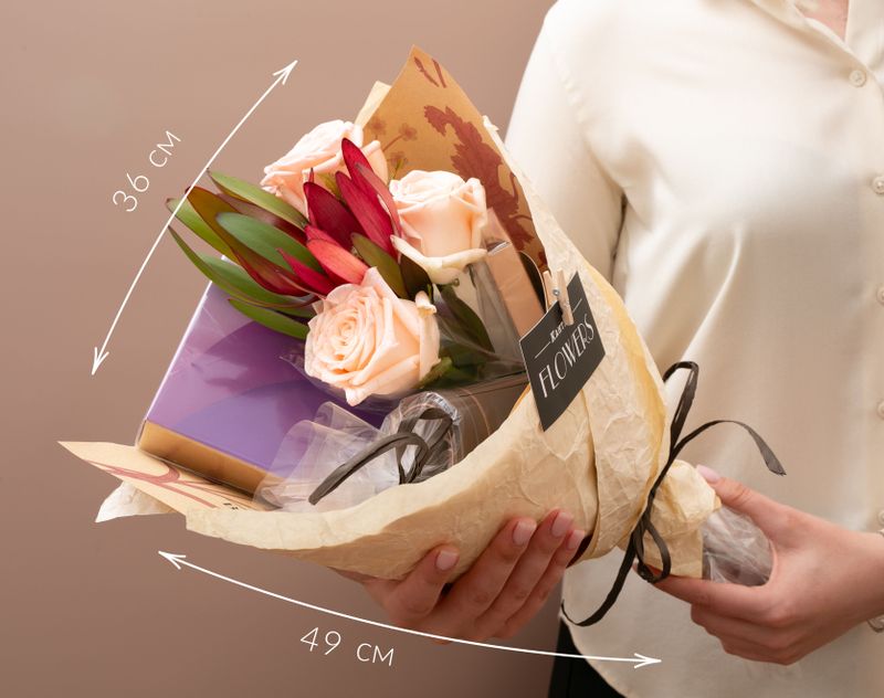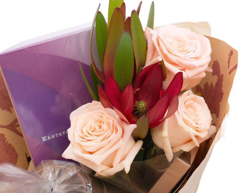 Изящный букет, украшенный композицией из живых роз и леукадендронов, объединил в себе бодрящие кофейные сорта. В подарке собраны три сорта кофе — два классических и десертный, к ним мы добавили стильную баночку для хранения. Шоколад «Апельсиновое настроение» станет вкусным дополнением напитков.