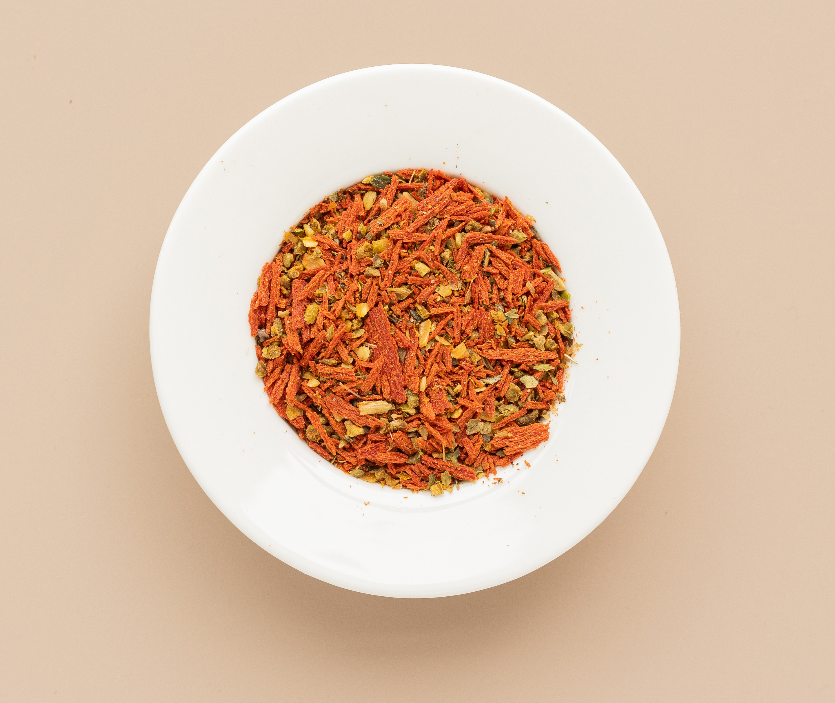 Состав: томатные хлопья (60%) (концентрат томатной пасты, кукурузный крахмал), оливки (20%), чеснок, соль, базилик, паприка, орегано.