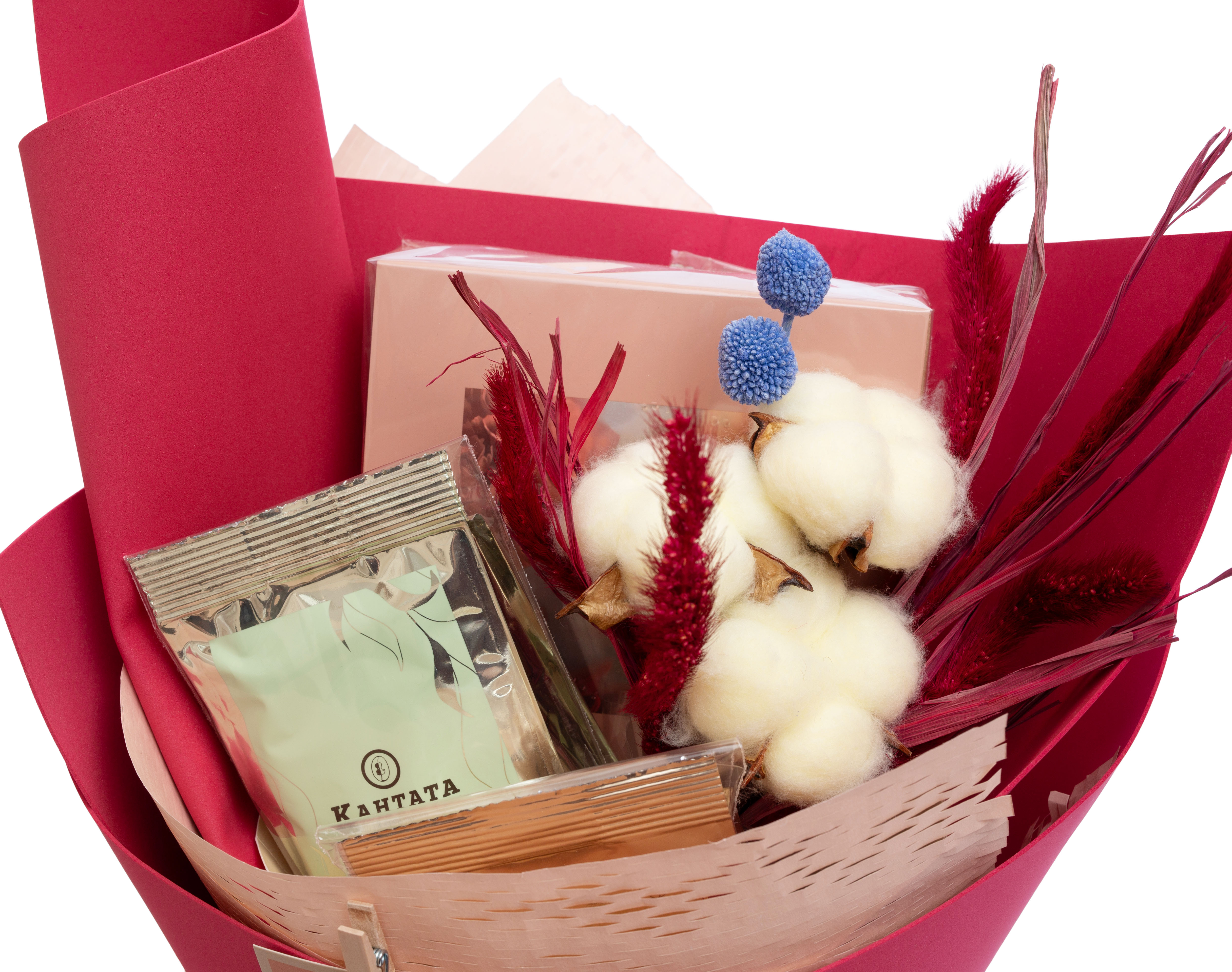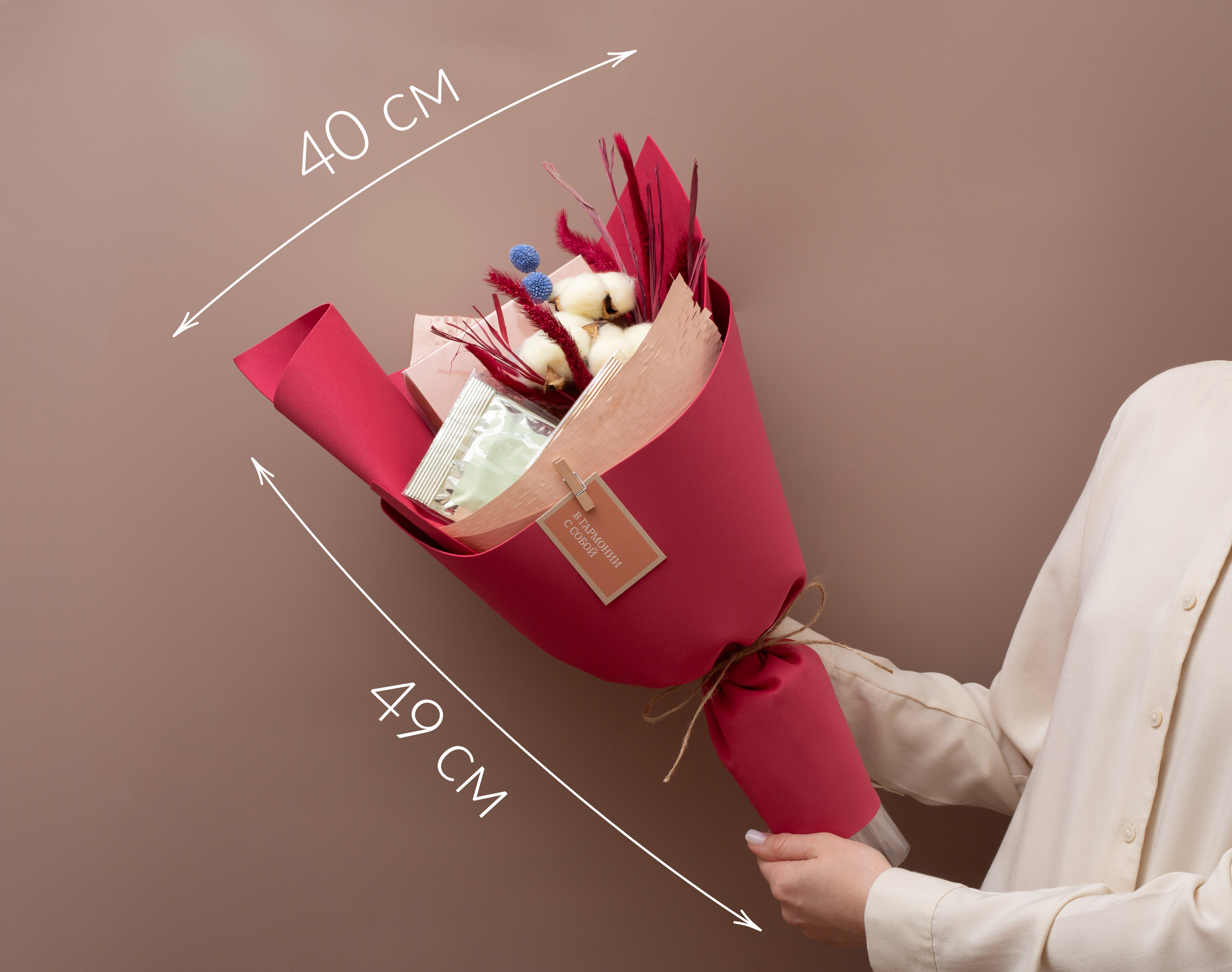 В качестве украшения используются сухоцветы и искусственные вставки.