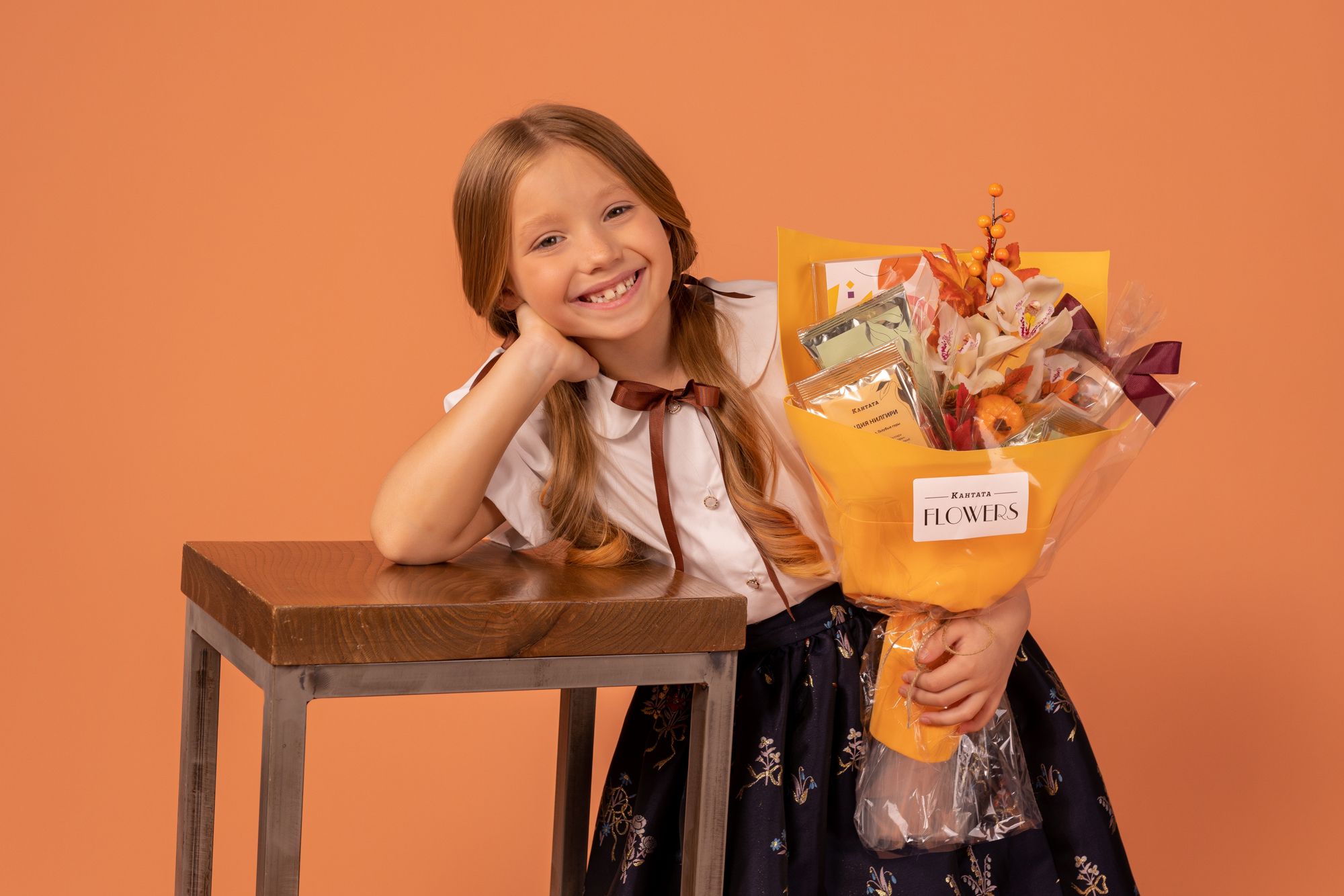 Букет, точно золотой солнечный луч! Изюминкой композиции стали великолепные орхидеи, дополненные ароматными напитками — семью сортами чая, среди которых как классика, так и купажи сливочных, фруктовых и пряных оттенков. Молочный шоколад с цитрусовым задором «Апельсиновое настроение» сделает чаепитие еще интереснее.