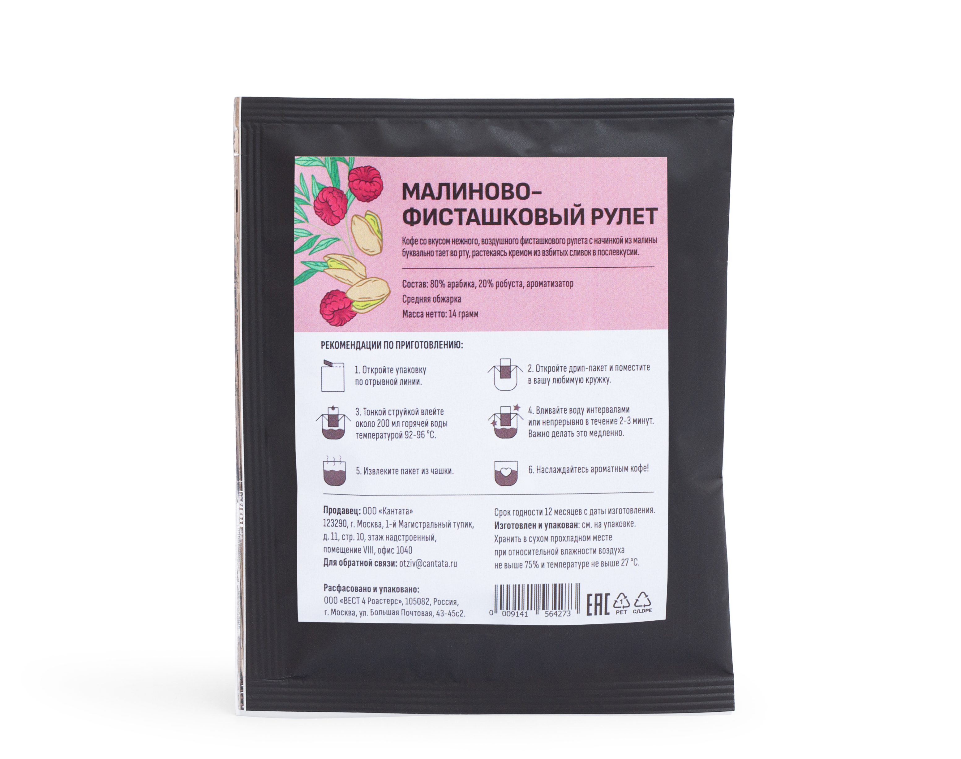 Купаж раскрывается ароматами воздушного фисташкового бисквита, сливочного крема с маскарпоне и кисло-сладкой свежей малины, придающей напитку яркость и свежесть. Финальный штрих — изысканная нота бренди, словно в пропитанном ликёром десерте.