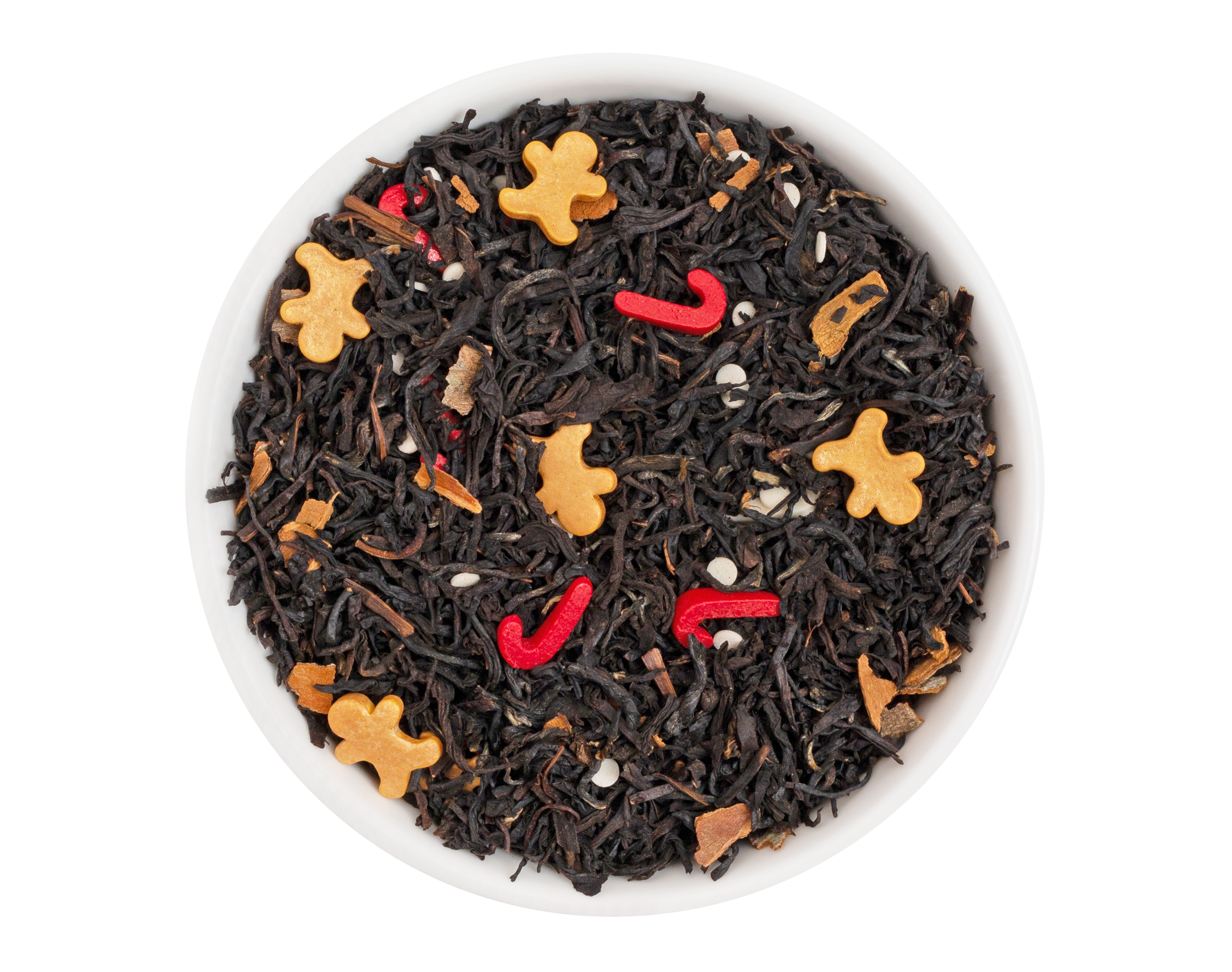 Купаж украшен сахарными фигурками, которые передают атмосферу зимней сказки: пряничные человечки, яркие тросточки и белоснежная посыпка, похожая на крошечные снежки. Каждая чашка этого чая — как маленький праздник, наполняющий теплом и радостью.