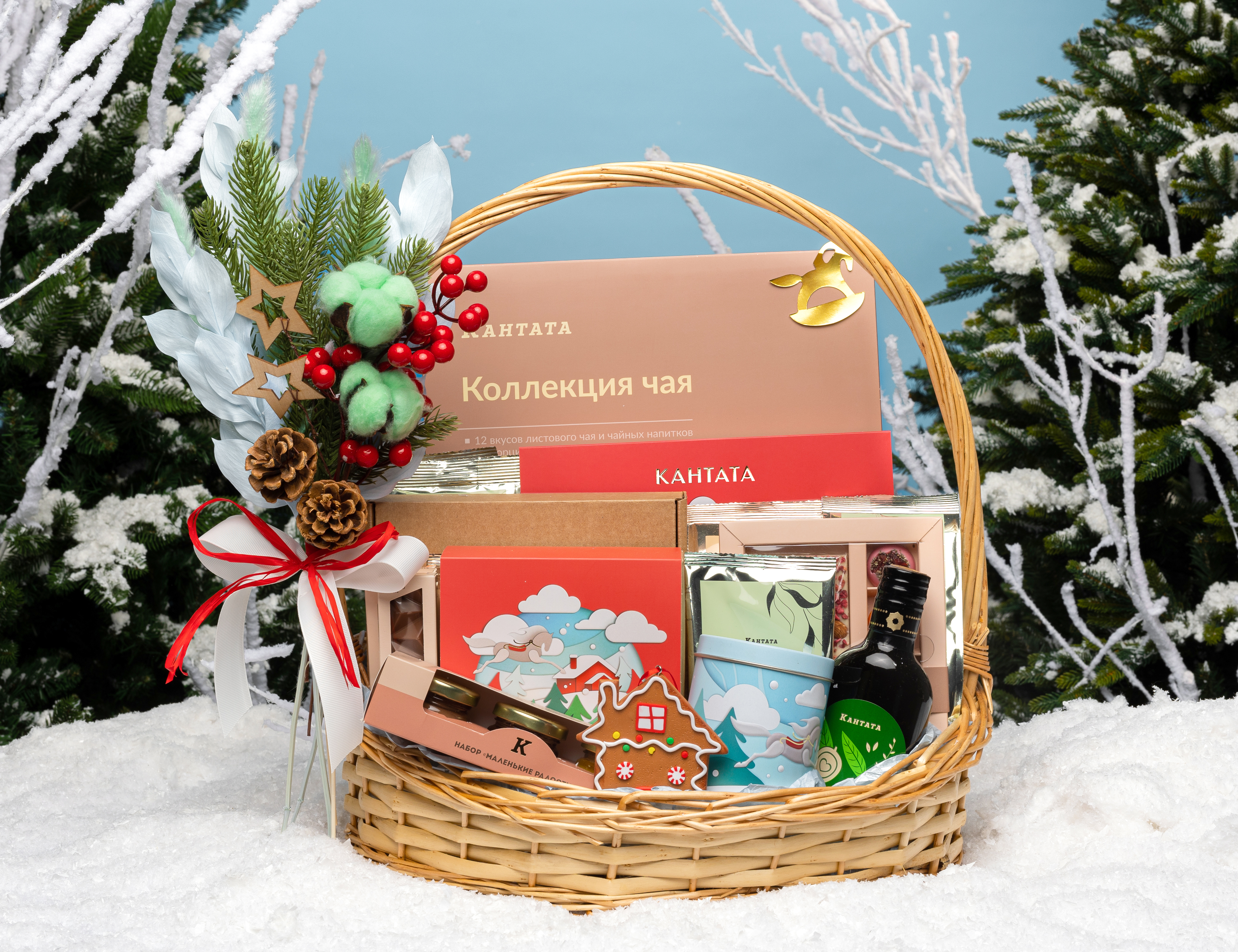 Эта корзина собрана из самых теплых мгновений зимы. В ней — ароматные чаи, шоколад, десерты и сироп, которые приглашают сделать паузу и насладиться уютом. Каждый элемент продуман до мелочей: от нежных сладостей до изящного декора с голубым рускусом и яркими ягодами. Подарок, который создаёт настроение неспешного зимнего вечера, наполненного светом, вкусом и заботой.