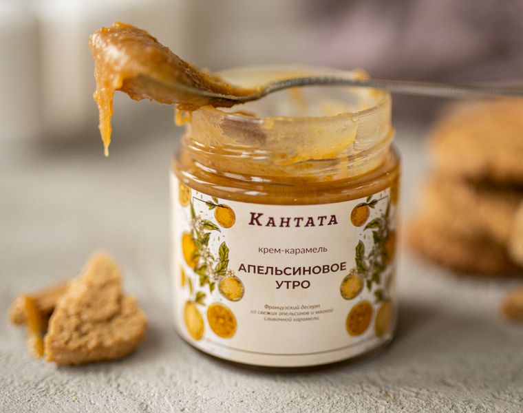 Крем-карамель «Апельсиновое утро» изготовлена по французским рецептам. Небольшое количество гималайской розовой соли пикантно оттеняет вкус апельсина, обогащая минеральный состав этого десерта.Мягкая консистенция лакомства позволяет намазывать его на хлеб и тосты, создавая вкусные бутерброды для завтрака. Также всего несколько ложек крем-карамели превращают классический пломбир в неповторимый десерт.