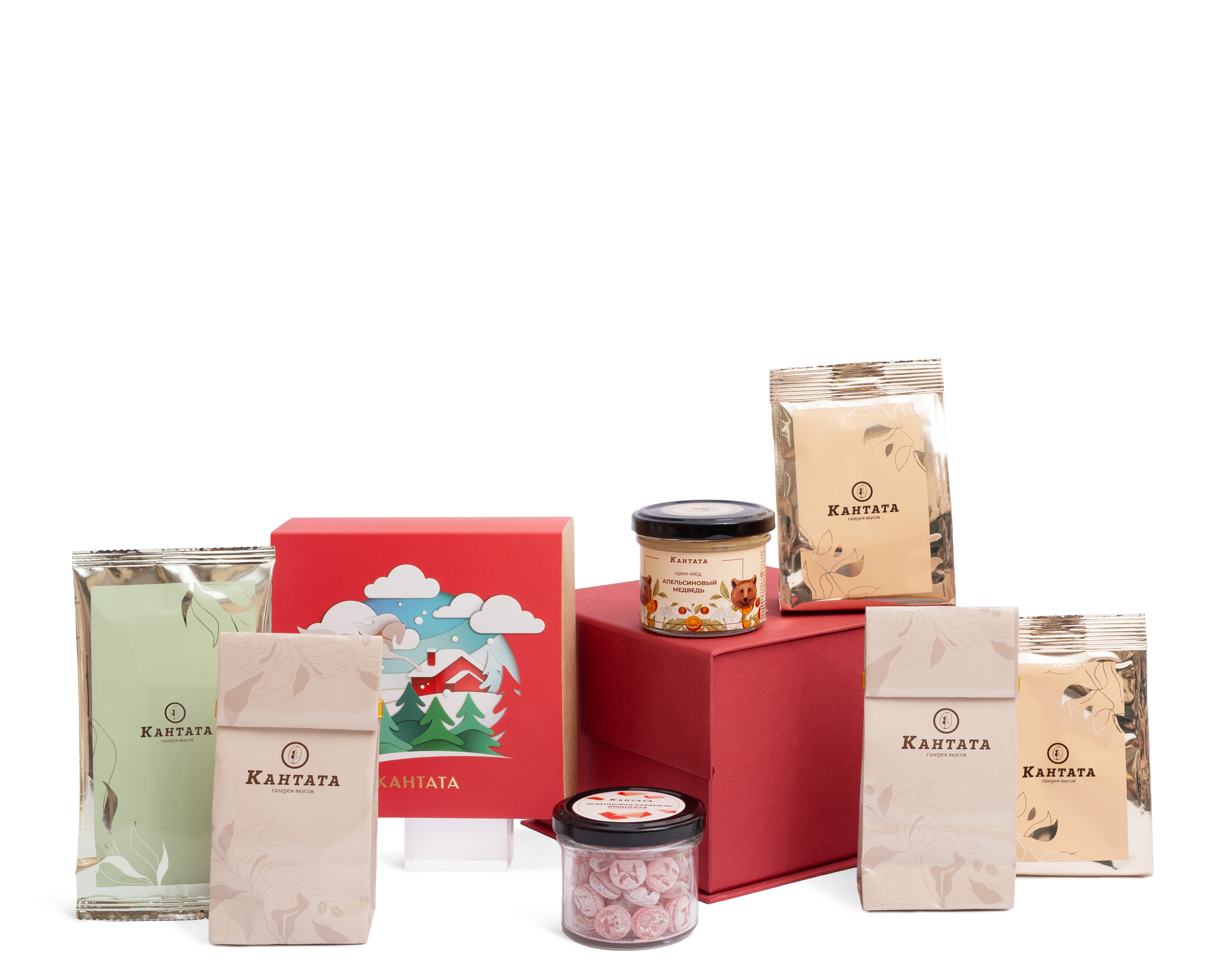 Элегантный красный куб с золотистыми акцентами собран для уютного зимнего чаепития. Внутри — отборный кофе, ароматные чаи с фруктовыми нотами, крем-мёд и леденцы, создающие праздничное настроение. Такой подарок наполнен теплом, вкусом и заботой — идеальный знак внимания в зимний сезон.