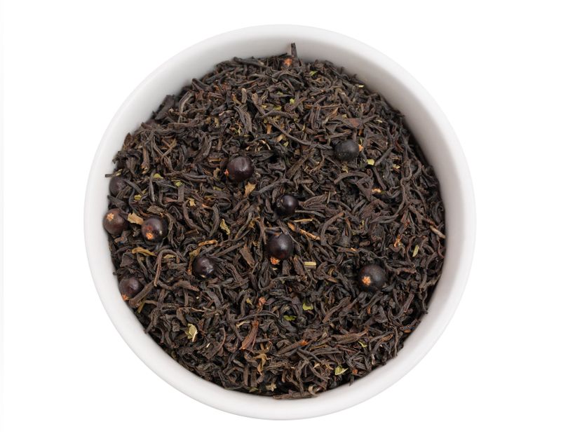 Купаж чёрного чая с добавлением сушеных ягод можжевельника и листьев мяты. Освежающий насыщенный чай с приятной хвойной нотой, создающий ощущение прогулки по хвойному лесу.