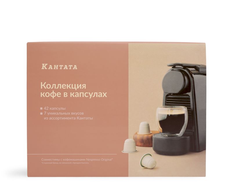 Семь уникальных вкусов из кофейного ассортимента «Кантаты». В наборе 42 капсулы, подходящие для приготовления кофе в машинах Nespresso® Original.