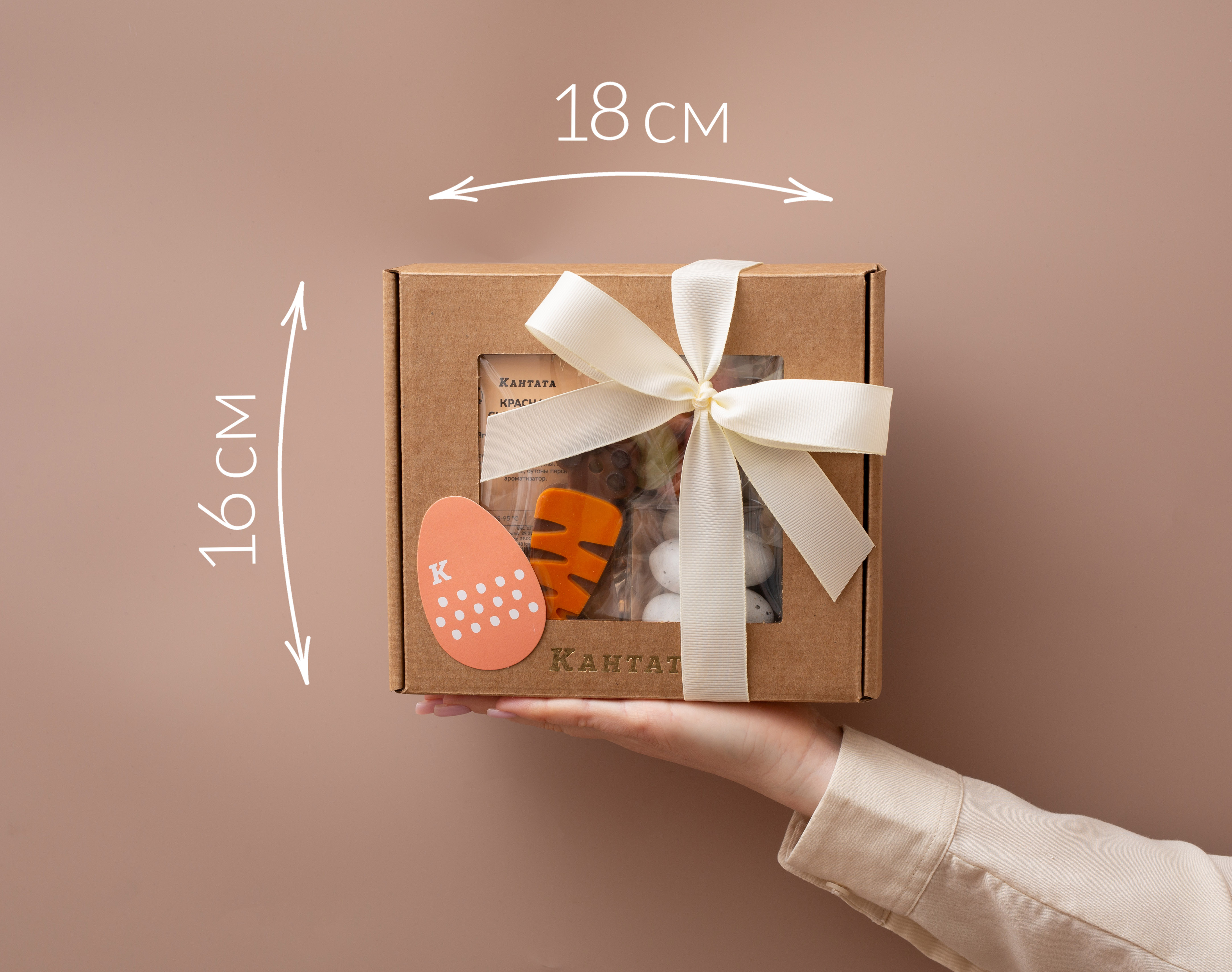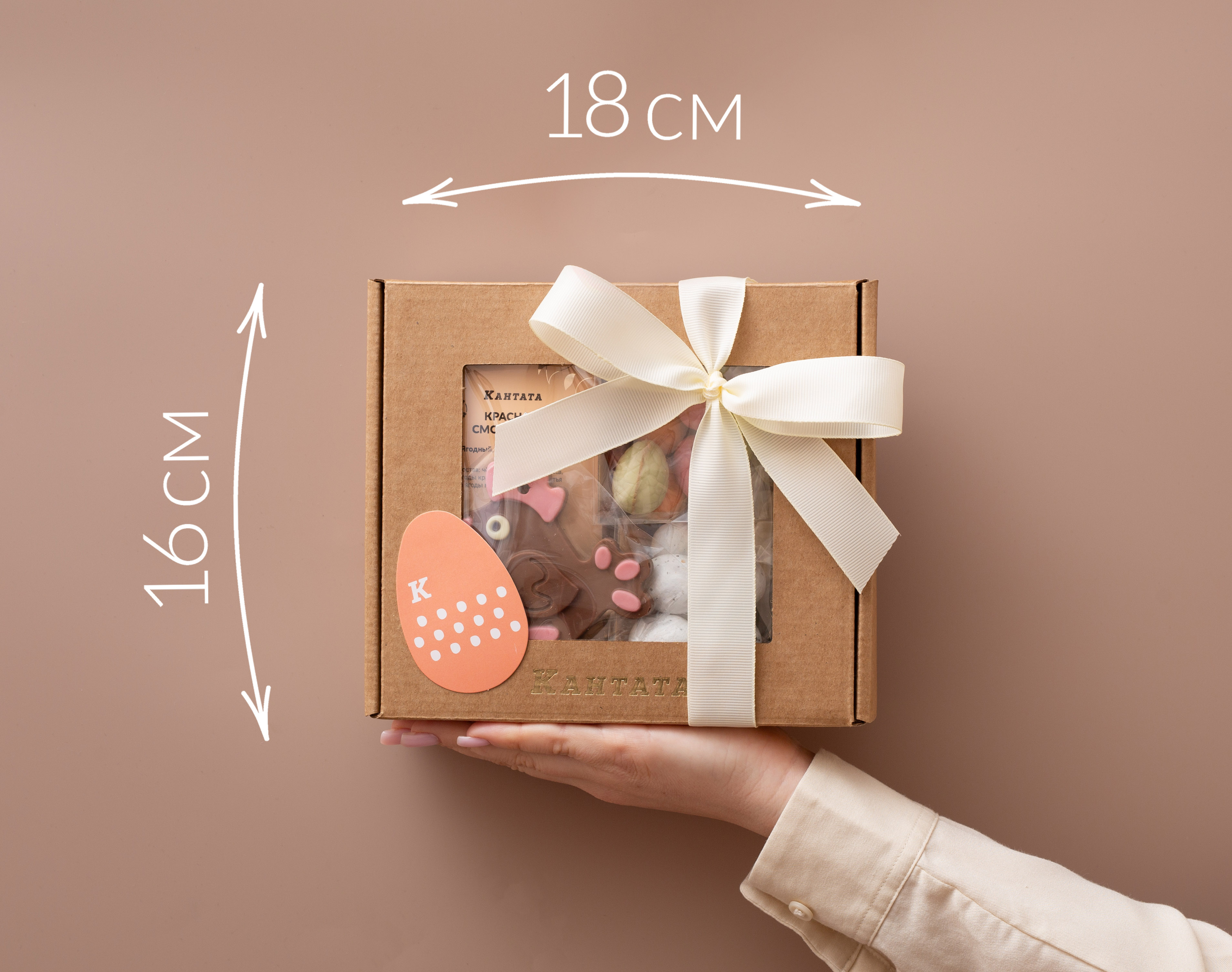 Внутри коробочки находятся тематические сладости, которые могут стать прекрасным украшением праздничных куличей.