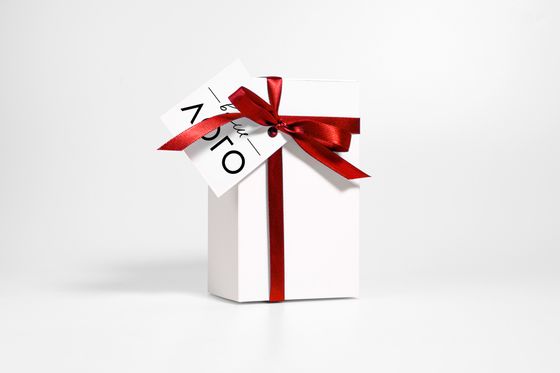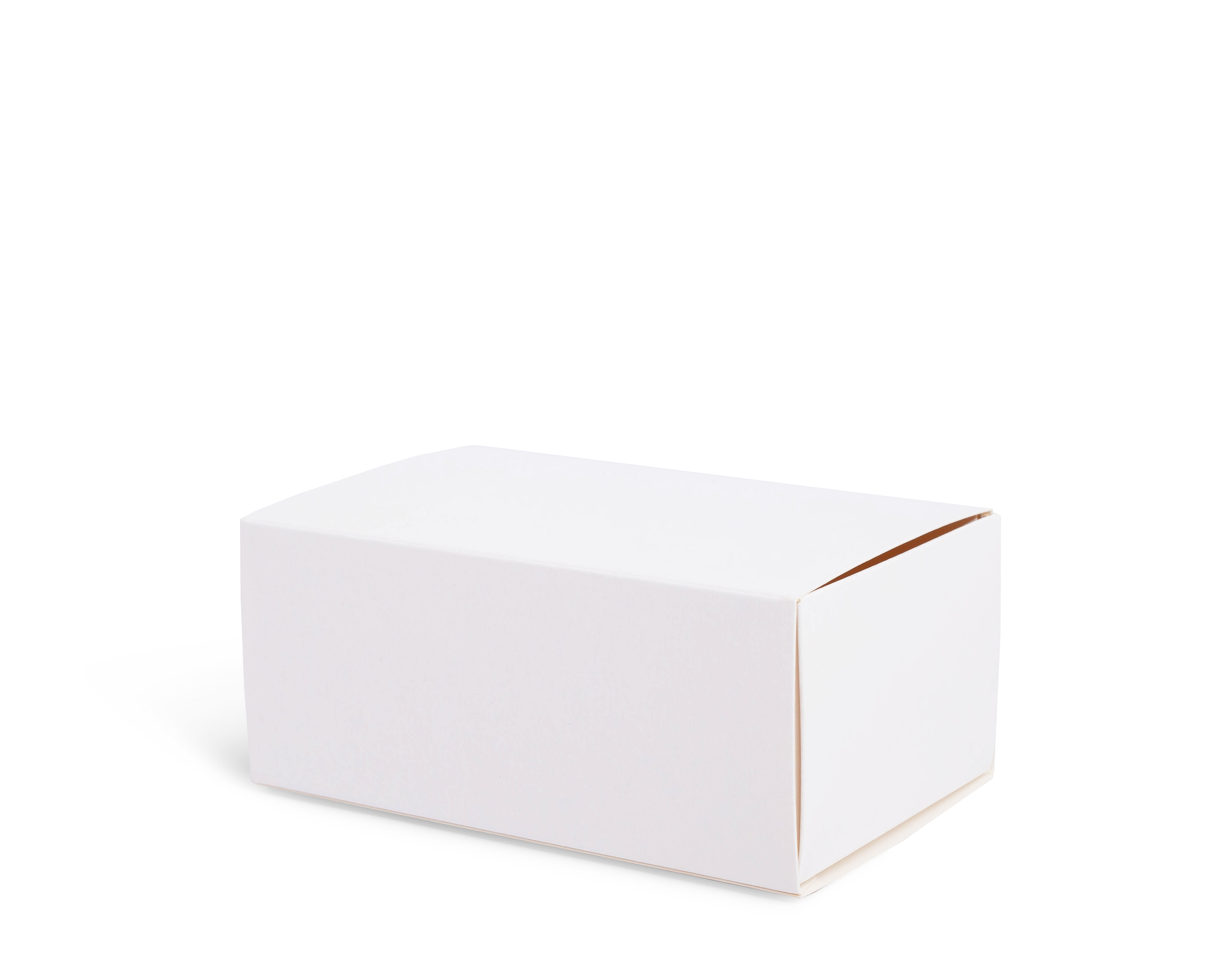 3 пирожных в упаковке из белого картона и бирка с вашим логотипом.