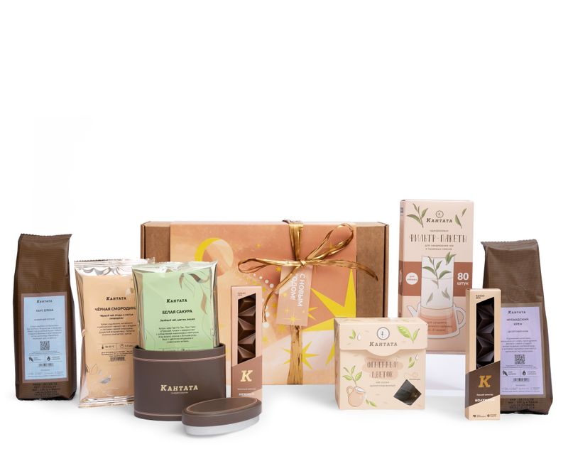 Новый год в кругу семьи и самых близких людей – волшебное и очень ценное событие. Мы уверены, такой подарок будет очень приятно получить от родных, ведь в нем – нежный молочный улун «Огненный цветок», купаж черного чая «Черная смородина» с приятным сладким звучанием, зеленый чай «Белая сакура» с яркой нотой вишни и цветов, а также два сорта кофе – «Ирландский крем» со сливочной нотой жгучего виски и «Хаус Бленд», сорт, на котором любой напиток получится таким вкусным, словно его приготовили в лучшей кофейне города. Чтобы любимый напиток надолго сохранил вкус и аромат, в подарок мы добавили стильную жестяную баночку для хранения, а для чаепитий – индивидуальные заварочные фильтр-пакеты. На десерт – две плитки шоколада: «Нежные облака» и «Колумбия», которые своим контрастом дополнят напитки и изящную композицию этого подарка.