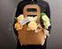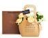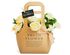 Изящная сумочка, в которой мы собрали душистые живые розы и диантусы, дополнили их гвоздикой и сочными листочками рускуса.