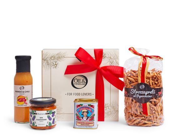 Яркий и щедрый подарок для настоящих гурманов. Внутри — сочетание итальянской пасты, гурмэ-шедевров и изысканных чаёв, которые создают настроение домашнего праздника. Каждый элемент подобран так, чтобы пробудить вдохновение: мягкий чай для уютных вечеров, аромат базилика и суго для кулинарных открытий, сладкая нуга для радости момента. Такой набор объединяет тепло, щедрость и атмосферу Нового года — в каждой детали и каждом вкусе.