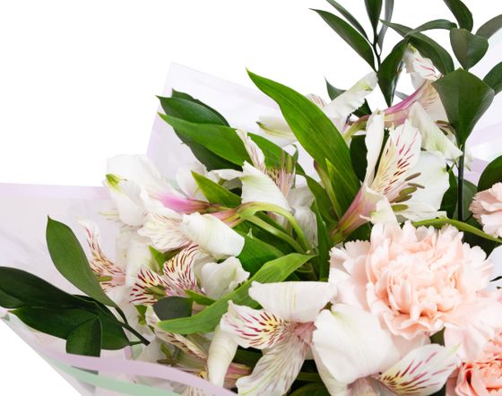 Эта композиция создана, чтобы передать очарование весны! Рядом с нежными цветами — два душистых чая и десертный кофе в зернах, а к напиткам — аппетитный шоколад в форме сердца.