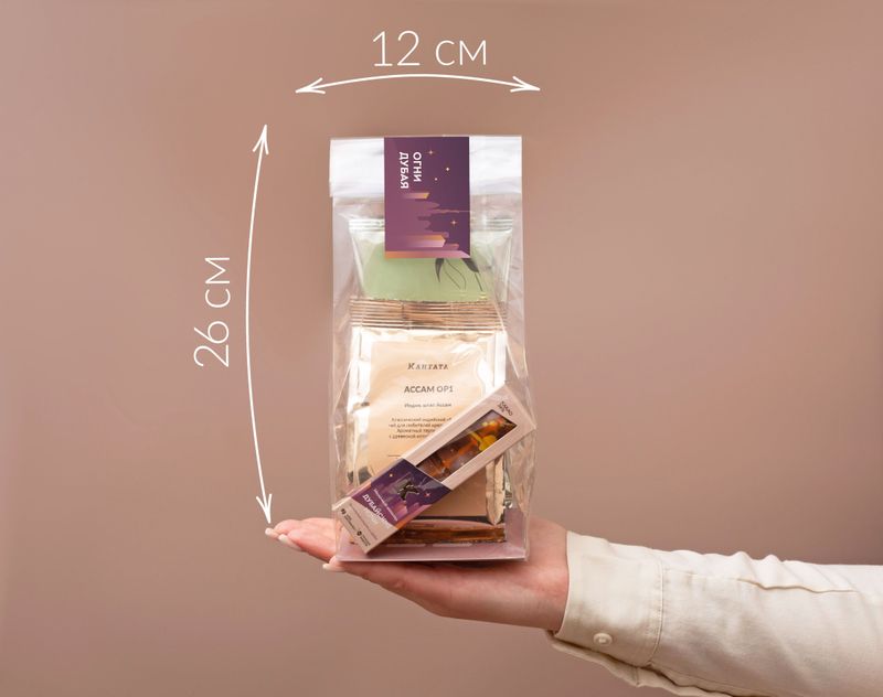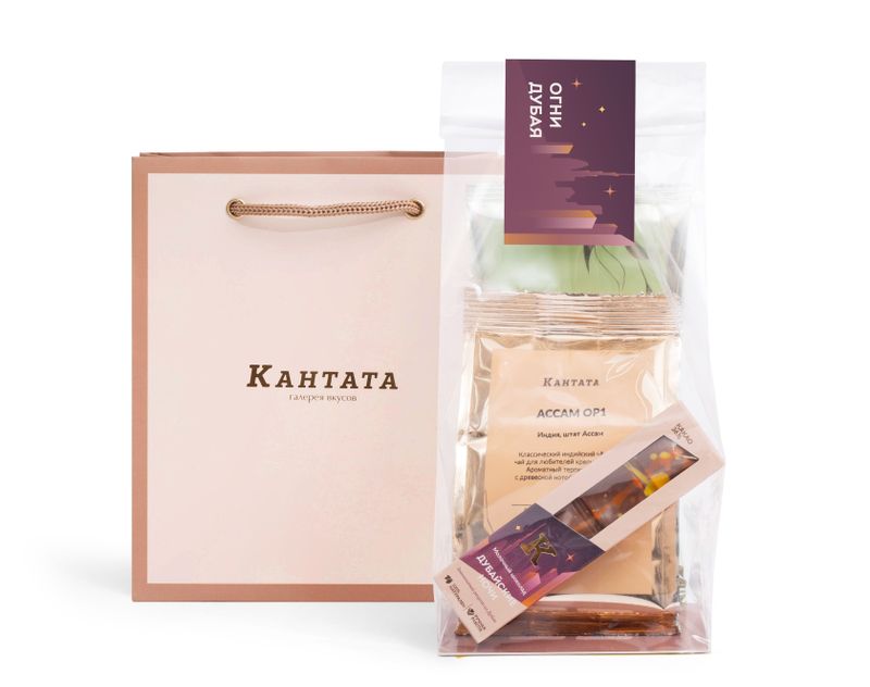 Роскошный подарок для того, кто хочет окунуться в жаркую восточную сказку! Лейтмотивом этого подарка стал легендарный шоколад по рецепту из Дубая – шокобар «Дубайские ночи» с обволакивающей фисташковой начинкой и хрустящим тестом «катаифи» под слоем ароматного молочного шоколада. К десерту – знойная пара напитков: терпкий индийский Ассам OP1 и «Аромат путешествий» – освежающий зеленый чай с искрящимся ароматом груши и бергамота.