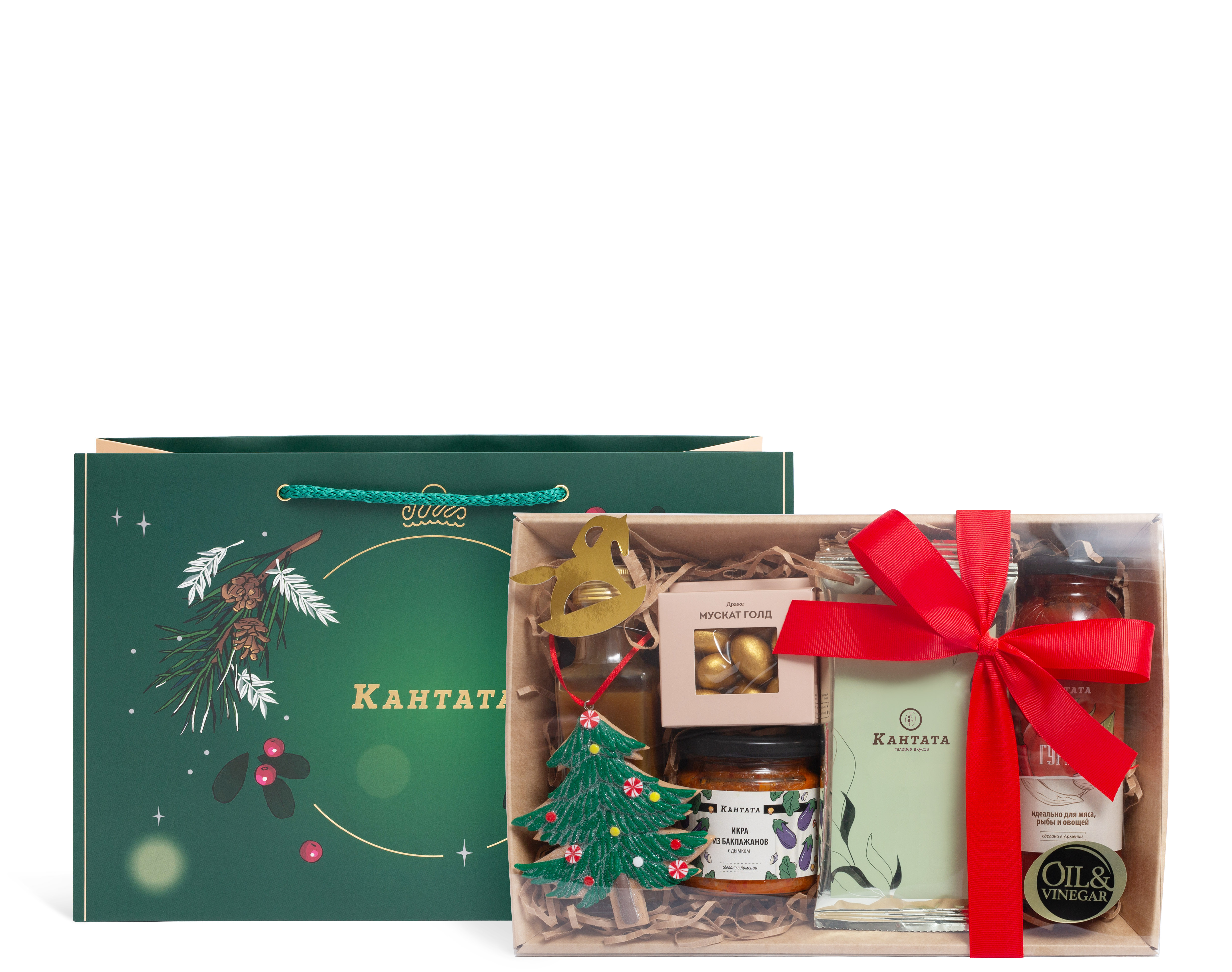 Набор объединяет всё, за что мы любим зиму — тепло, уют и насыщенные вкусы. Пряный манго, томатный соус гриль и ароматные баклажаны с дымком создают гастрономическую основу, а чайные купажи добавляют мягкости и душевности. Драже «Мускат Голд» и новогодний декор завершают композицию сладкой праздничной нотой. Такой подарок станет настоящим украшением зимнего стола и передаст атмосферу зимнего уюта и вкуса.