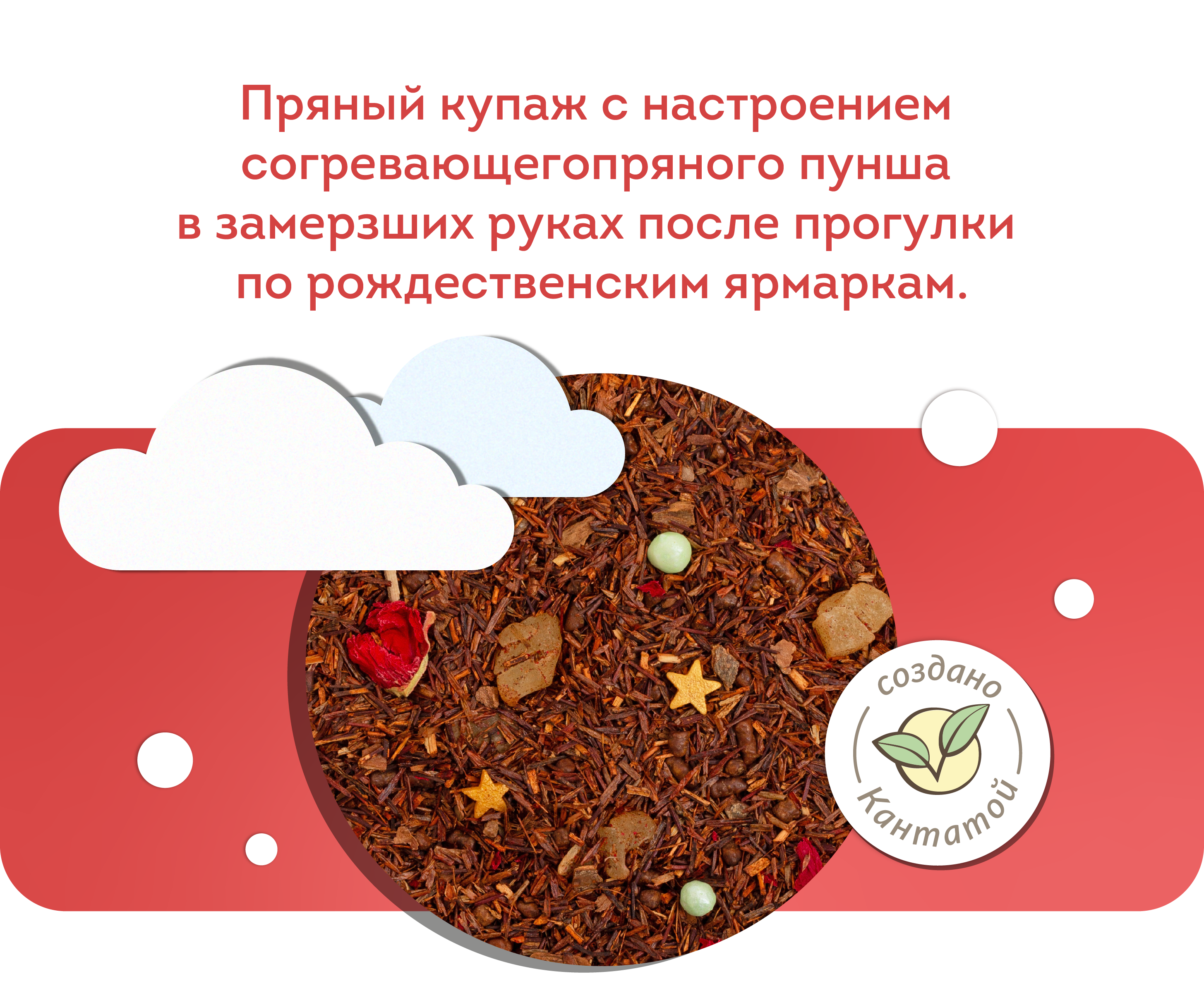 Помимо богатого вкуса, купаж поражает своим праздничным видом: красные лепестки граната и миниатюрные сахарные фигурки напоминают о ярмарочных огнях и зимнем веселье. Такой чай станет тёплым и красивым подарком, который радует и взгляд, и душу.