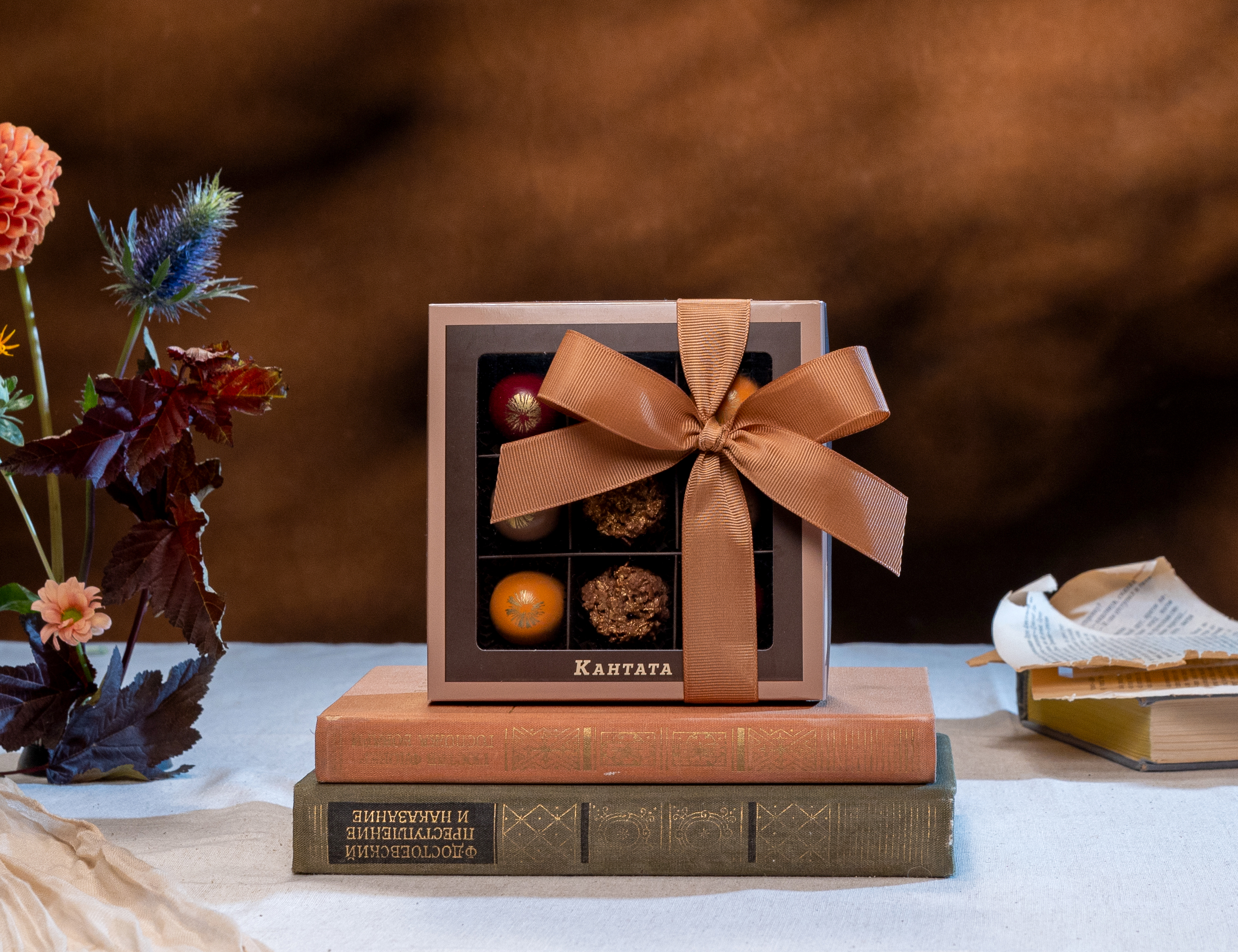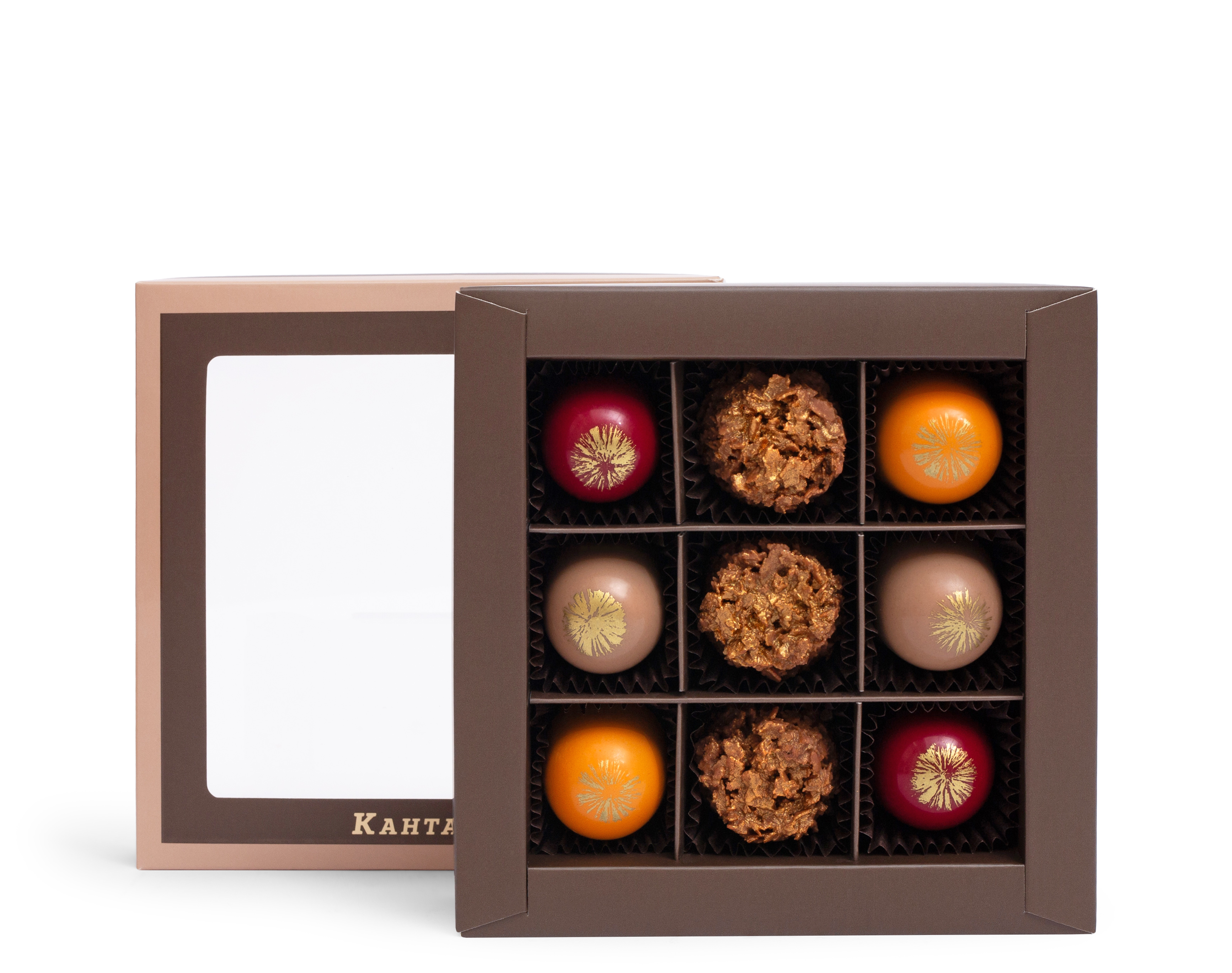 Стильная коробка с девятью конфетами: сочные трюфели и корпусные шедевры «Барной коллекции». Вкус, в котором ощущается почерк мастера.