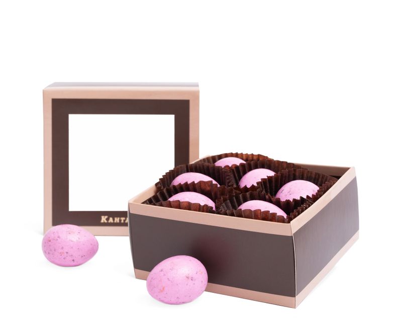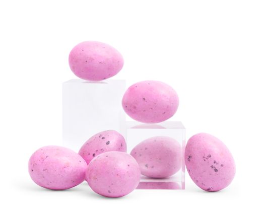 Драже с начинкой из ароматного клубничного шоколада и нежной миндальной пасты. Особое очарование ему придает тонкая сахарная глазурь с ярким декором.