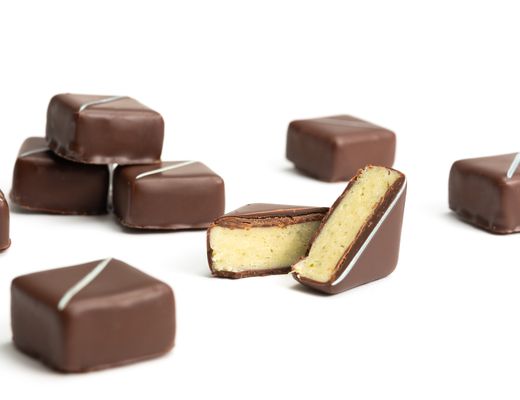 Сокровище для любителей вкусных десертов: хрустящий вафлей шоколадный трюфель «Наполеондор» с золотистым украшением, конфеты «Шоколадная мята» с тонкой свежей нотой, трюфели «Мадам Бовари» в оболочке из отборной фисташки и трюфели «Мангустин» со сливочной фруктовой начинкой.