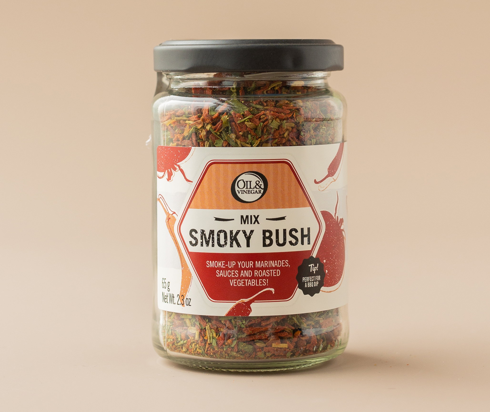 Состав: томатные хлопья (36%) (концентрат томатной пасты, кукурузный крахмал), паприка (29%), приправа (соя), зеленый лук, розмарин, петрушка, соль, чеснок, базилик, орегано, мальтодекстрин, перец халапеньо (1,1%), репчатый лук, оливковое масло, подсолнечное масло, копченая соль (0,1%).