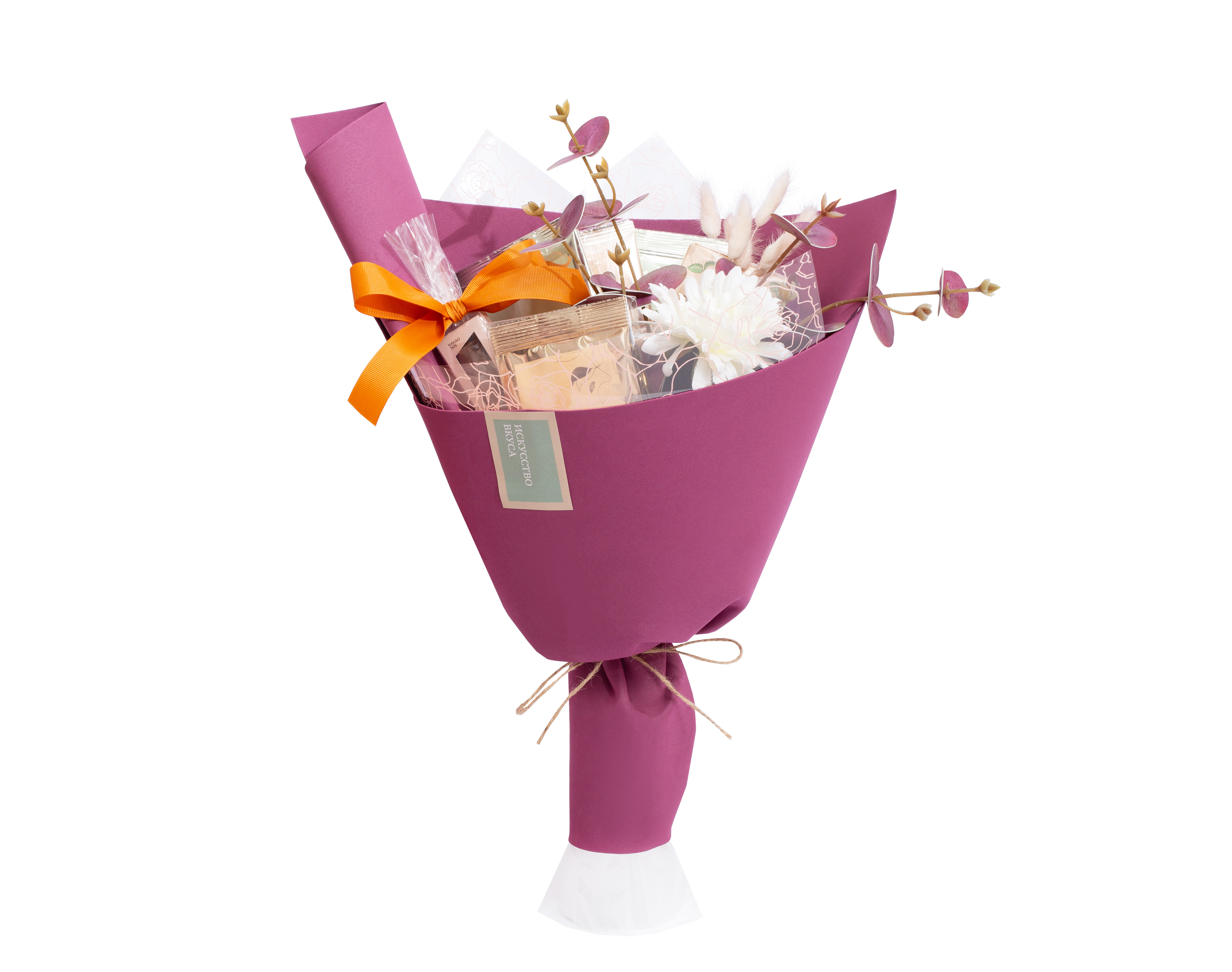 Букет, который объединяет лучшее: аромат, красоту, вкус, радость гастрономических открытий. Набор от Кантаты с чаем, кофе, десертами сделает любое событие особенным и привлечёт внимание.