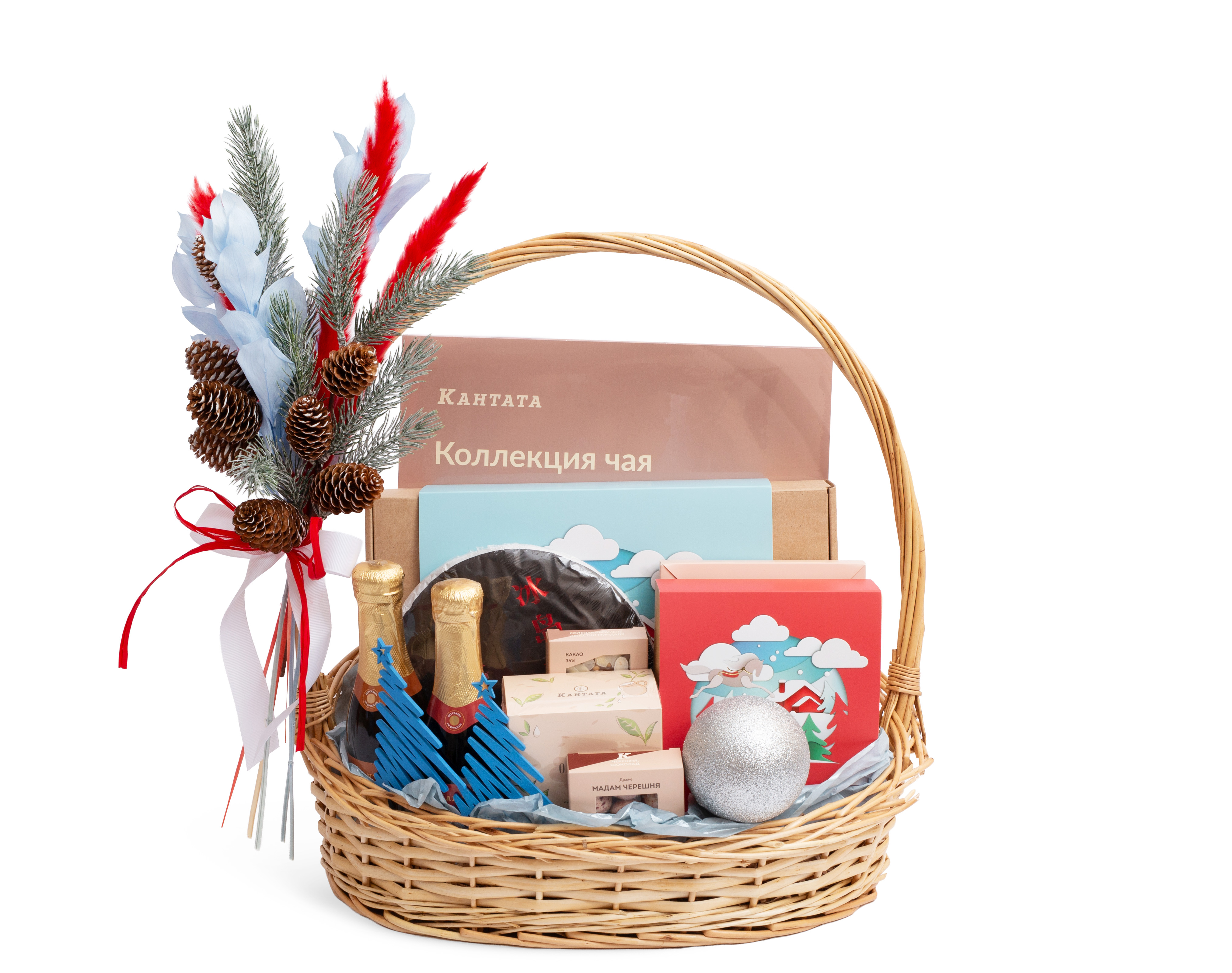 Не знаете, что выбрать для подарка, чай или кофе? Берём всё! И конечно, добавляем в набор сладости от кондитеров Кантаты. Осталось только определиться с оформлением: корзина, коробка, букет. Какая форма нравится вам?