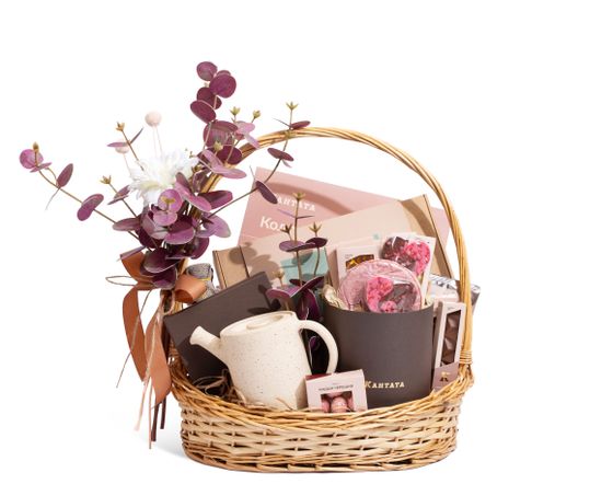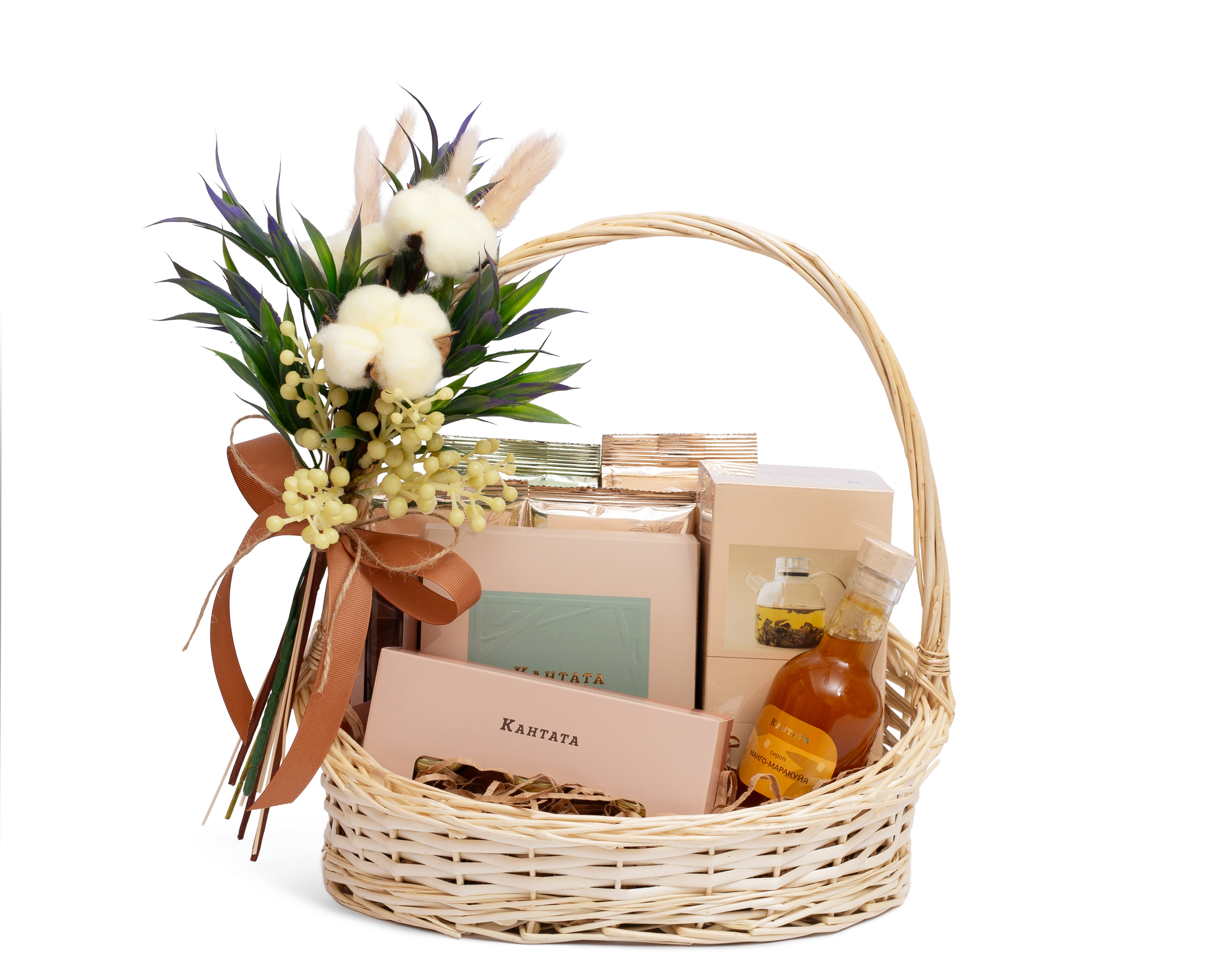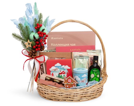 Корзина, которая объединяет лучшее: аромат, красоту, вкус, радость гастрономических открытий. Набор от Кантаты с чаем, кофе, десертами сделает любое событие особенным и привлечёт внимание.
