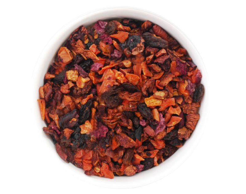 Состав: кусочки яблока, изюм, кусочки моркови и свеклы, натуральный ароматизатор, чёрная смородина, ежевика.
