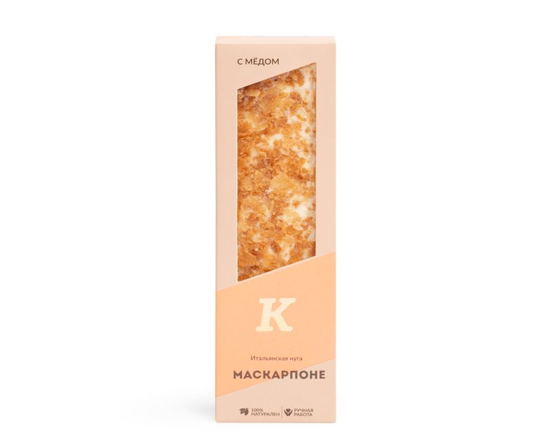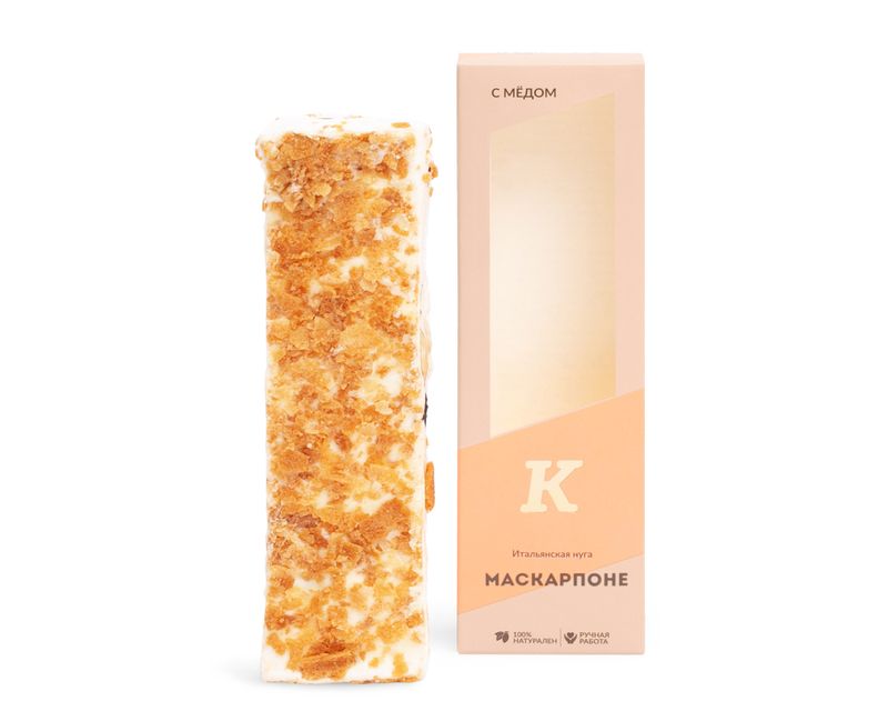 Нежнейшая нуга с ярким сливочным вкусом сыра маскарпоне. Сладость покрыта слоем белого шоколада с вафельной крошкой. Внутри — отборный миндаль, фундук и чернослив.