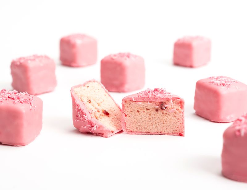 Изысканный, тонкий аромат клубники и кокоса очаровывает. Нежный, сладкий, ягодный вкус десерта дарит незабываемое наслаждение. С каждым воздушным кусочком маршмеллоу словно взлетаешь к розовым облакам сладких мечтаний.