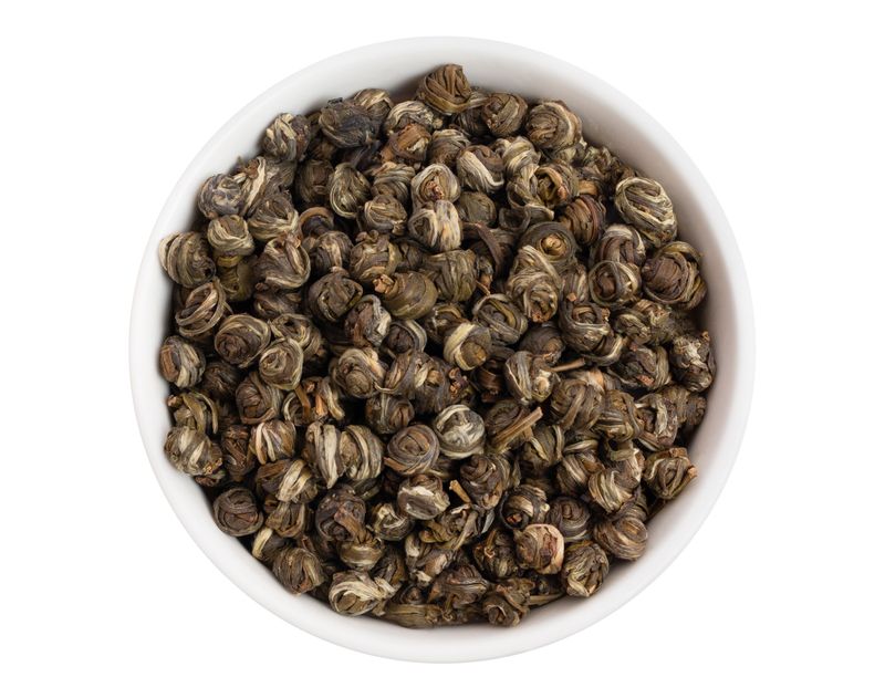 «Жемчужина дракона», также известный как Моли Лун Чжу – это высококачественный китайский зеленый чай из провинции Гуанси, уезд Хэнг, натурально ароматизированный жасмином. Для его производства требуются особое мастерство и терпение. Собранный в начале весны, умело скрученный в форму жемчужины, этот чай проходит сложный процесс ароматизации цветочными лепестками. Нераскрывшиеся бутоны жасмина, которые были собраны ранним утром, везут на фабрику и смешивают с готовым зеленым чаем. В течение 8-10 часов чай впитывает аромат нежных лепестков, затем они отсеиваются, им на смену добавляется свежая партия цветов. Этот процесс повторяется 4 раза.