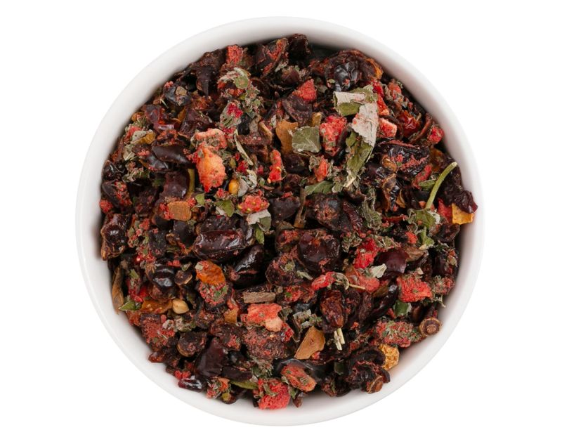 Состав: шиповник ягоды, клубника ягоды, малина лист, корица.