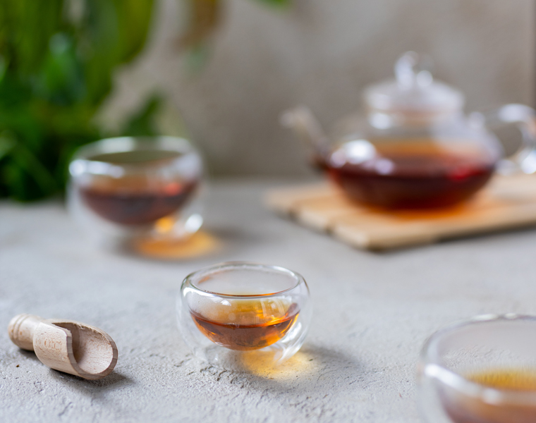 Этот ароматный напиток имеет умеренную плотность и мягкий вкус. Привычных оттенков пуэра почти не чувствуется, зато ярко раскрывается кислинка ягод.