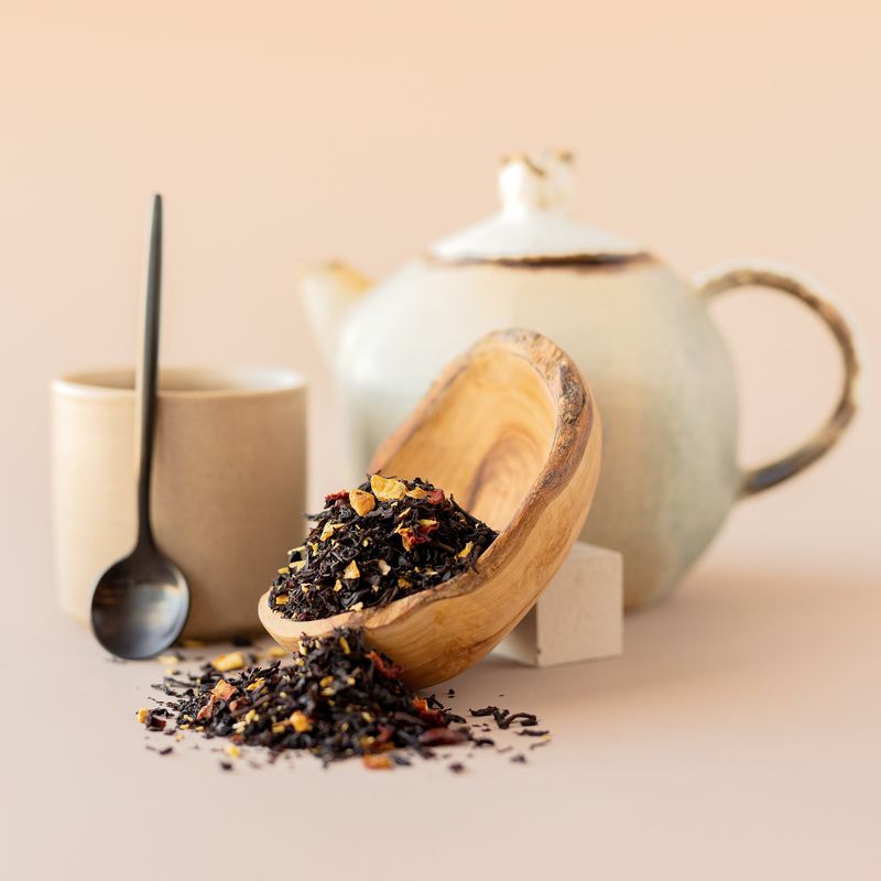 Черный чай «Ассам» с миндалем, апельсином, кокосом, какао, розой. Имеет нежный бисквитный аромат, создаёт праздничное настроение и просто идеален для семейного чаепития.