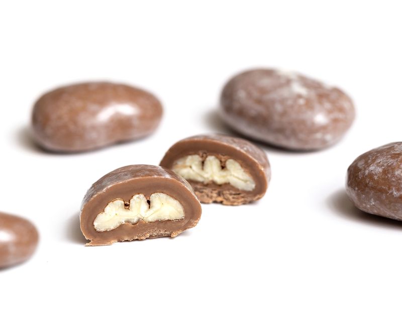 Состав: молочный шоколад с карамелью (сахар, какао-масло, сухое цельное молоко, какао тертое, сухое обезжиренное молоко, карамелизованный сахар, эмульгатор: соевый лецитин; искусственные ароматизаторы, краситель: экстракт паприки; натуральный ароматизатор: ваниль), белый шоколад (сахар, какао-масло, сухое цельное молоко, эмульгатор: соевый лецитин; натуральный ароматизатор: ваниль), орех пекан, глянцеватель: капол; краситель: диоксид титана. Содержит орехи, молоко, сою. Может содержать следы продуктов, вызывающих аллергию.
