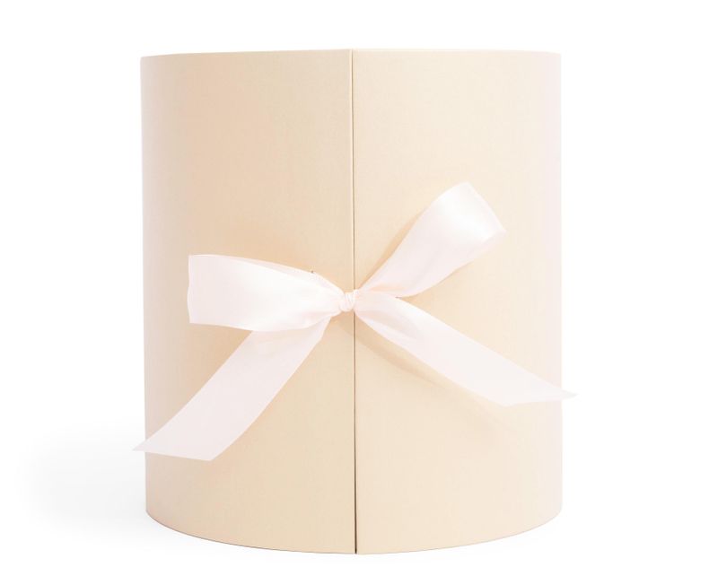 Стильная шляпная коробка для вашего подарка в искрящемся цвете «шампань». Имеет разделение на два уровня — для двух этажей наполнения.