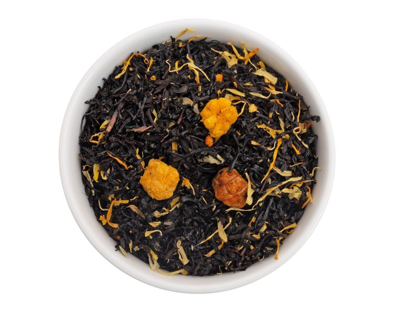 Состав: черный чай Ассам, ягоды морошки субл., лепестки календулы, натуральный ароматизатор.