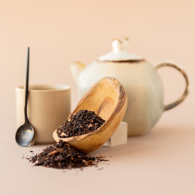 Чёрный мелколистовой чай с лепестками розы и плодами вишни.