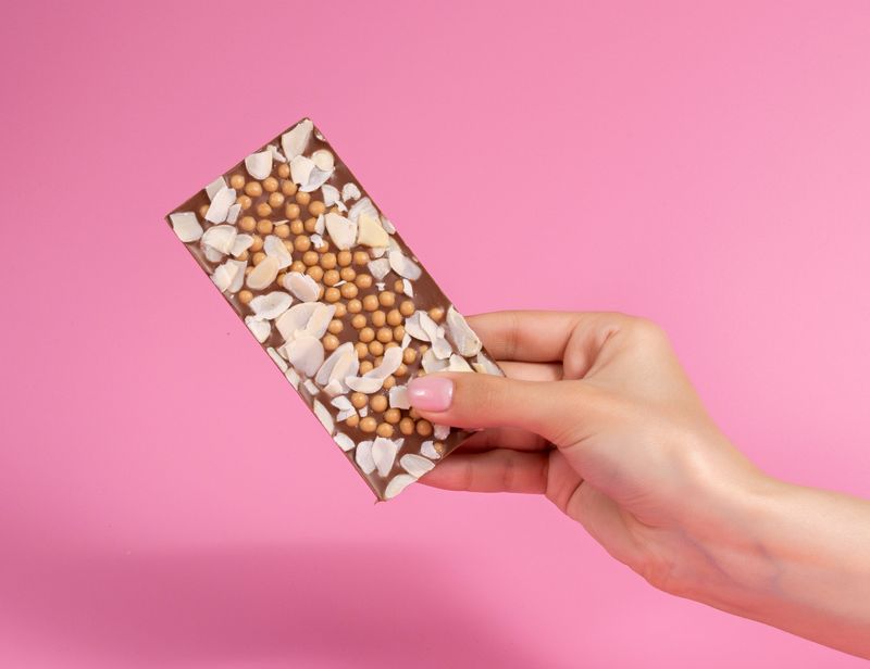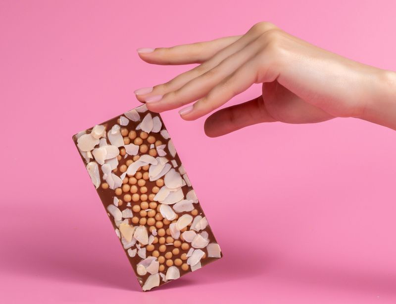 Ореховые лепестки вносят завершающий штрих в создание десерта. Они украшают плитку подобно цветочным лепесткам и добавляют во вкус утонченную ноту миндаля.