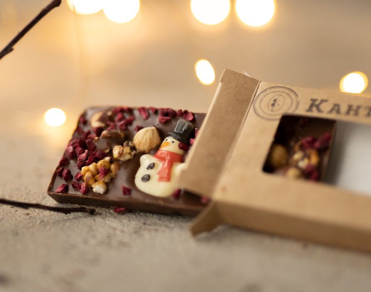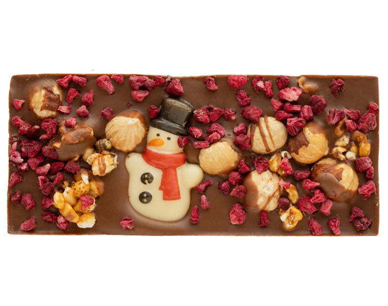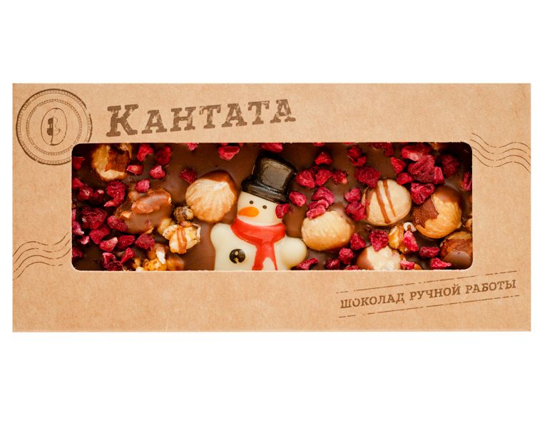 Хрустящая гречка в сочетании с ягодами и молочным шоколадом создает сытное и оригинальное лакомство, а снеговик добавляет оттенки праздничного зимнего настроения.