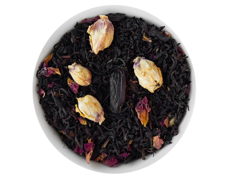 Состав: черный чай, натуральный ароматизатор, бобы тонка, бутоны белого гибискуса, лепестки розы и кусочки ванили.