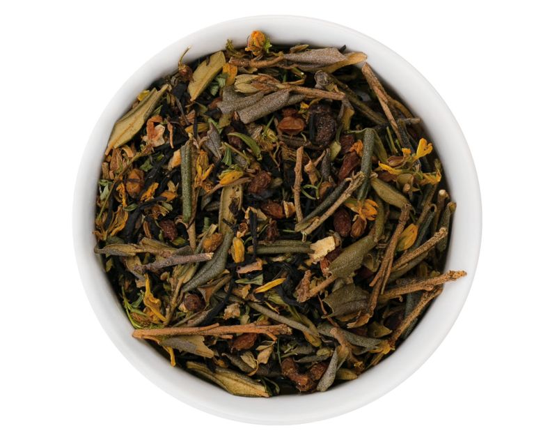 Смесь на основе черного чая с добавлением диких трав, облепихи и апельсина. Терпкий вкус с сильным характером, цитрусовой нотой и благородной горчинкой в послевкусии.
