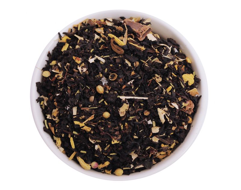 Купаж черного чая с пряностями, стручками рожкового дерева, жареным цикорием и семенами кедра. Имеет сладкий пряный вкус с хвойным ароматом.