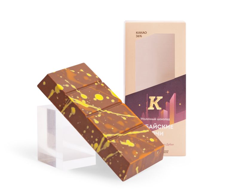 Вдохновившись роскошью и кулинарными изысками Дубая, шоколадная фабрика создала свое прочтение дубайского шоколада, которое не только сохранило узнаваемые черты восточного десерта, но и привнесло мелодию творчества.