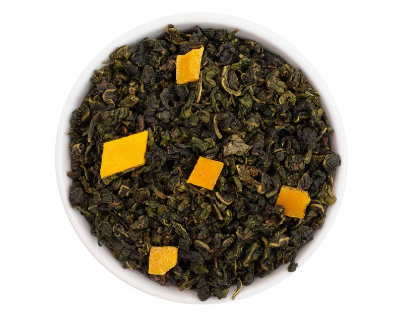 Известный светлый улун Те Гуань Инь с цукатами спелого сладкого манго.